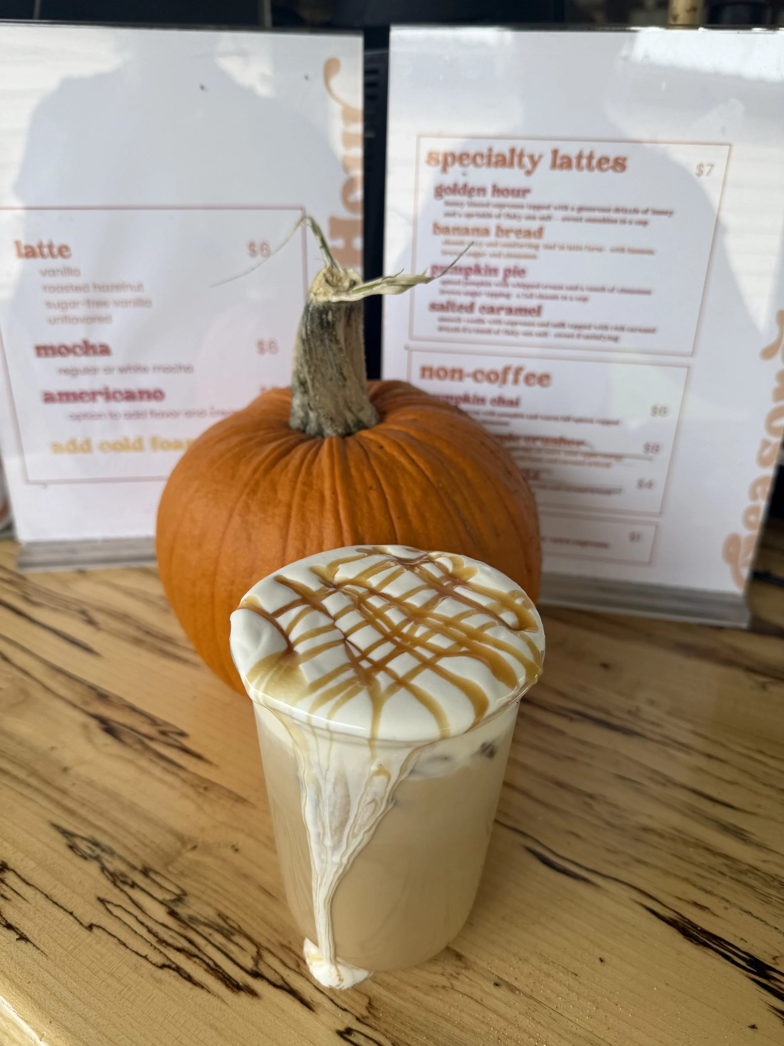 Our menu is thoughtfully curated featuring seasonal flavors made with high-quality syrups and fresh ingredients. We rotate seasonally but always have classic Golden Hour favorites available. Every menu is designed to feel elevated, cozy, and approachable. For examples of past menus, visit our About Us section.